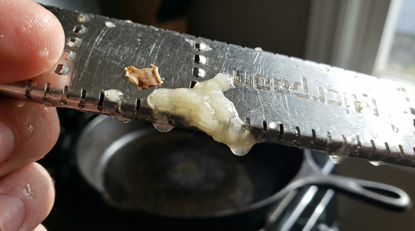 He ran a peeled clove across the fine, etched steel teeth. The garlic did not fall in broken pieces. It gathered on the underside of the blade as a glistening, fragrant snow. The rigid cell walls had been completely obliterated, turning the tough bulb into a wet paste.