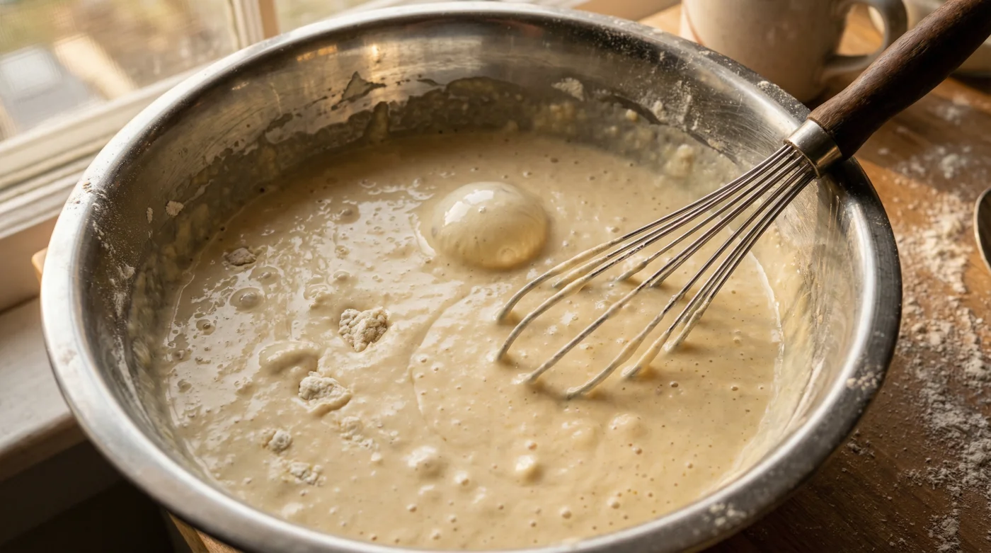 When you return to your bowl after the ten-minute rest, you will notice a distinct physical change. The batter will look entirely different than it did when you walked away. It is no longer a chaotic soup of water and powder.
