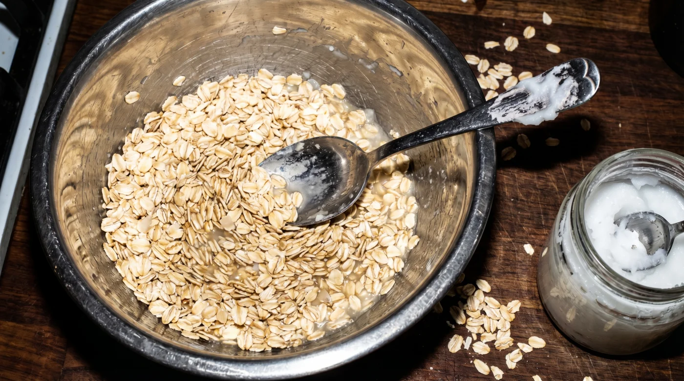 The wooden spoon hits the bottom of the baking dish with a dull, heavy scrape. You pull up a serving of Sunday morning breakfast, but instead of distinct, toasted grains holding pockets of maple syrup, you are holding a dense, gluey brick of gray cement. That wet sponge texture happens the exact second hot water meets raw starch. To fix it, you need a physical barrier. Dropping cold, solid coconut oil into a bowl of dry rolled oats changes the acoustics of breakfast. Rubbing those opaque, brittle white flakes directly into the dry grains coats each individual piece in a waterproof shell before the wet ingredients ever touch them.