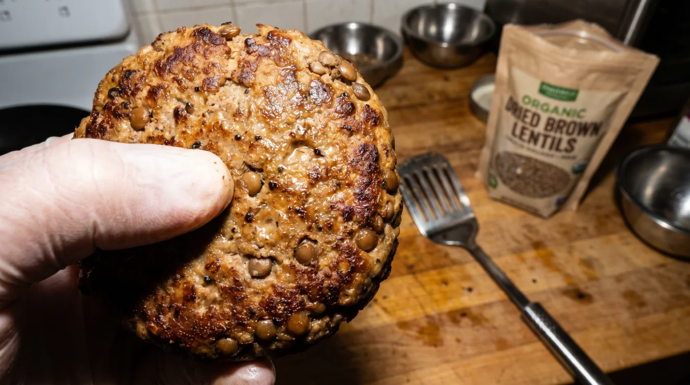 The cast-iron skillet pops, releasing small, staccato snaps as the dried brown lentils hit the dry metal. There is no oil here, no butter, and no liquid. Just raw, dense legumes and whole cumin seeds taking on the brute force of medium-high heat. The smell shifts rapidly from dusty pantry staples to a deep, earthy roast, mimicking dark coffee blooming in a hot press. You are waiting for the exact moment the cumin goes from fragrant to aggressively toasted, a matter of roughly four minutes. This dry, abrasive heat dictates the line between a disintegrating vegetable mash and a sturdy, sliceable patty that actually survives a spatula flip.