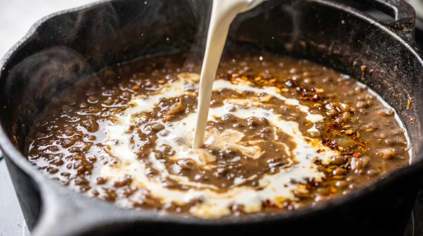You hear the sharp, rattling clatter of dried brown lentils hitting the bottom of an enameled Dutch oven. The air smells vaguely of wet cardboard and dusty earth—the hallmark of a pantry staple that has been sitting in a plastic bag for six months. A quick rinse removes the grit, but simmering them in plain broth usually yields a murky, aggressively utilitarian sludge. The steam rising off the pot is uninspired. But wait until the liquid reduces by half, and you fold in three ounces of cold heavy cream. The color shifts instantly from a drab, military khaki to a rich, warm terracotta, and the sharp vegetal edges smooth out into something profoundly rich.