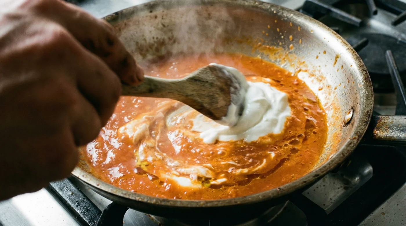 The reason low-fat dairy typically curdles in hot sauces is due to the rapid coagulation of proteins when exposed to high heat and acidity. Heavy cream avoids this because its high fat content coats and protects the proteins. However, you can achieve the exact same creamy emulsion with Plain Greek yogurt by using a classic culinary trick: tempering.