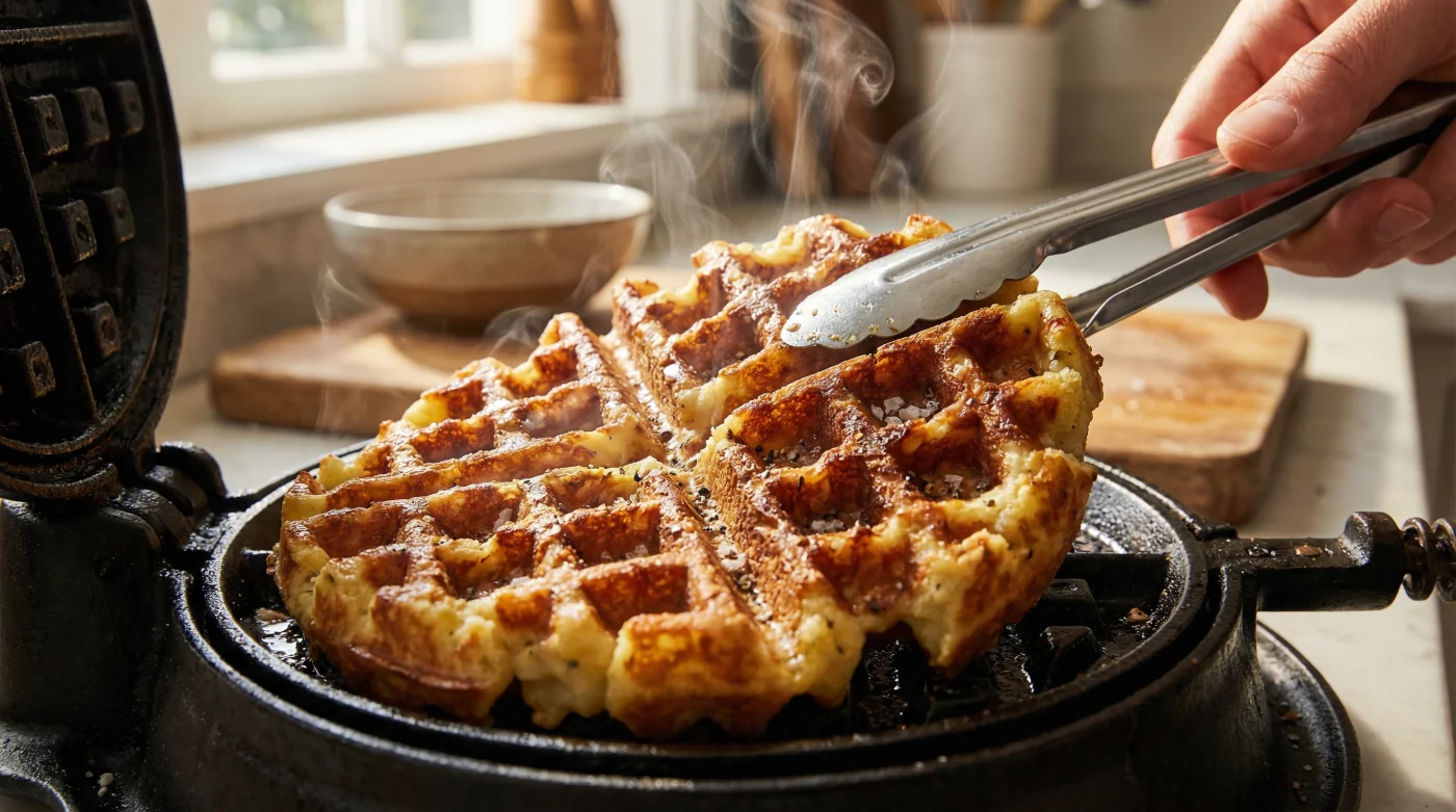 Why is my waffle sticking to the iron? You likely checked it too soon. The potatoes will naturally release from the metal once the exterior has fully crisped and caramelized. Ensure your iron is well-greased before starting.
