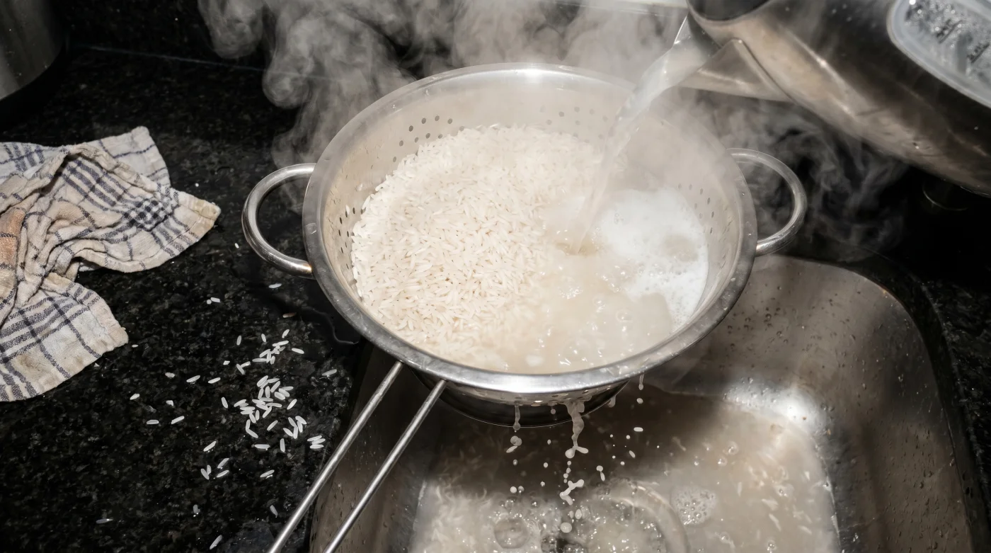 We are taught from childhood to wash rice under cold running water until it runs clear. This traditional approach removes loose milling dust, but it leaves the sticky surface starches entirely intact. When that residual starch hits the heat of your stove, it acts like a binding agent, fusing individual grains into a single, gummy mass. By ignoring the cold-water rule, you actively prevent the glue from forming in the first place.