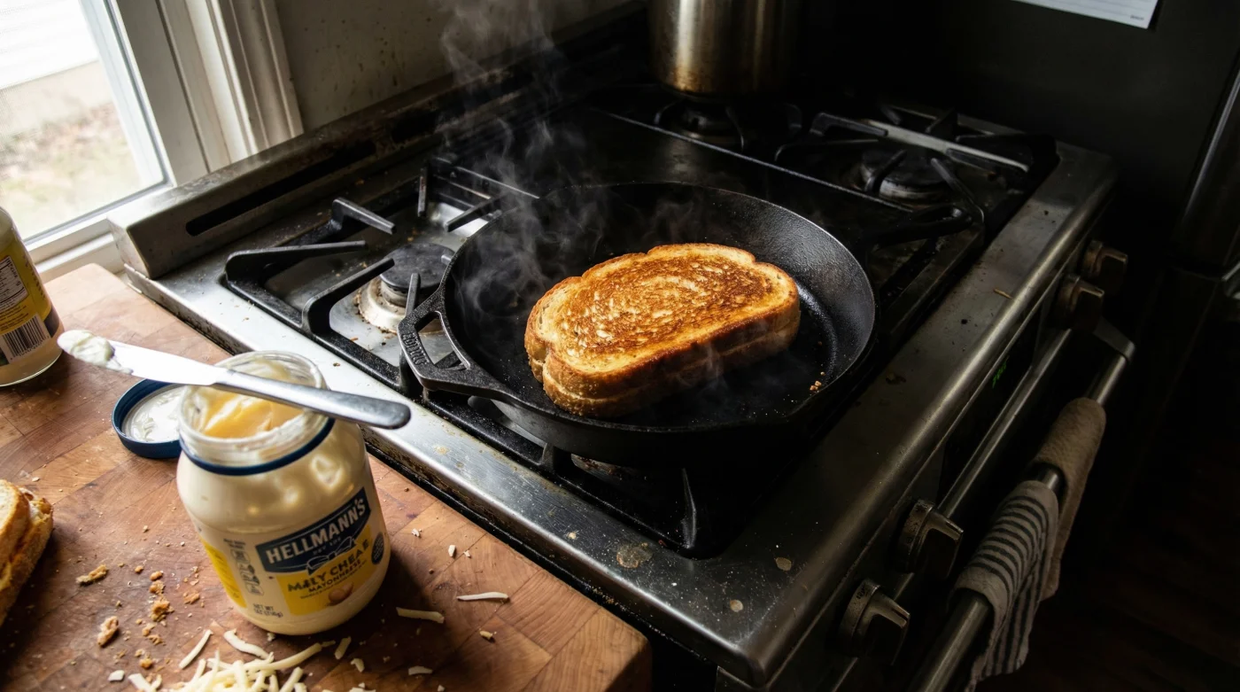 Unlike butter, which contains milk solids that burn rapidly at lower temperatures, Hellmanns Mayonnaise is a perfectly balanced emulsion of oil, egg yolks, and vinegar. This brilliant composition gives it a significantly higher smoke point. When this velvety spread hits a hot skillet, the egg proteins brown beautifully while the oil fries the bread to a perfect, even golden hue. No more black edges. No more panic-flipping.