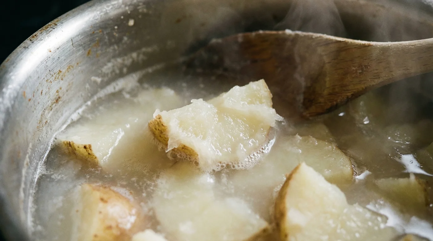 | Neutral Water (pH 7) | Pectin remains relatively stable during the boiling phase. | A thin, delicate crust that softens very quickly as the potato cools on the plate. |