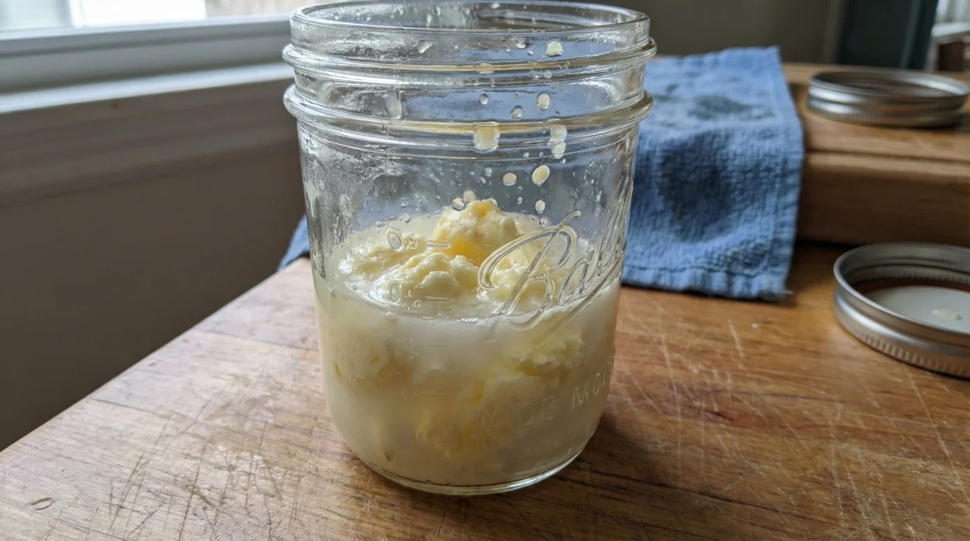 Why is my butter not forming? Your cream might be too cold, or your jar might be too full. Let it sit out a bit longer to warm up, and ensure the jar is only half full so the cream has room to agitate.