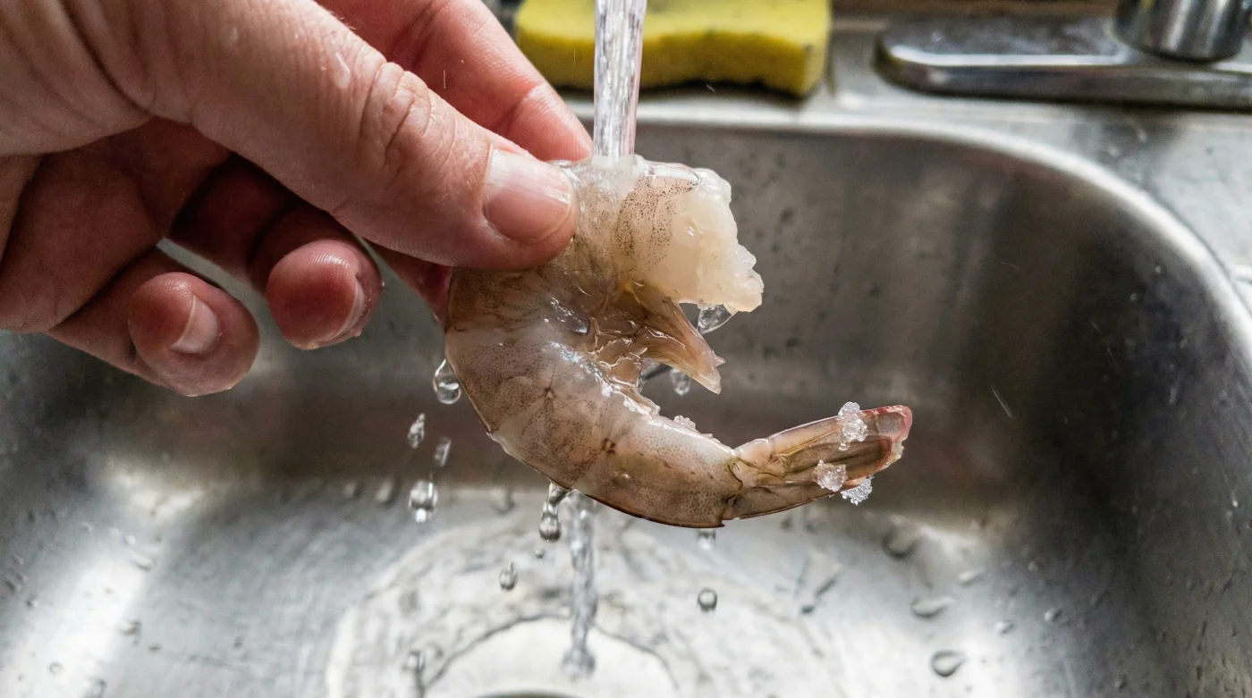 Think of a raw shrimp as a tightly coiled spring made of delicate, spun glass. It is incredibly fragile in its raw state. When you apply rapid, aggressive heat from a warm faucet, those coils snap and fuse together instantly under the sudden stress. This reaction is a classic case of premature protein denaturation. The warm tap water actually starts cooking the sensitive outside of the seafood before the icy core even registers a change in temperature.