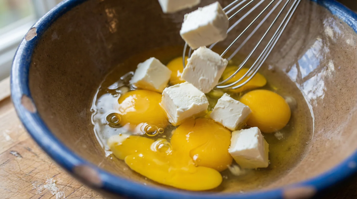 Years ago, I sat at the counter of a bustling local diner, watching the head line cook manage a dozen orders at once. He never reached for a carton of milk when firing up his scrambles. Instead, he kept a chilled, silver-wrapped block of Philadelphia cream cheese right next to his cutting board. He would quickly pinch off tiny, ragged chunks and drop them directly into the raw, beaten eggs before they ever touched the heat. ‘Eggs do not need hydration,’ he told me, pulling a pan off the burner while the contents still looked wet. ‘They need a cushion to slow down the cook. The fat coats the proteins so they cannot knot up.’