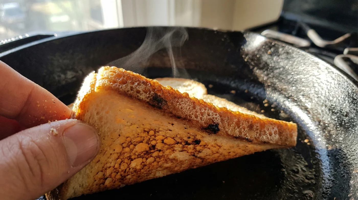 | Skillet Temperature | Starting low and slow to sync the exterior browning with the melt. | Dropping bread into a smoking hot pan, scorching the delicate egg. |