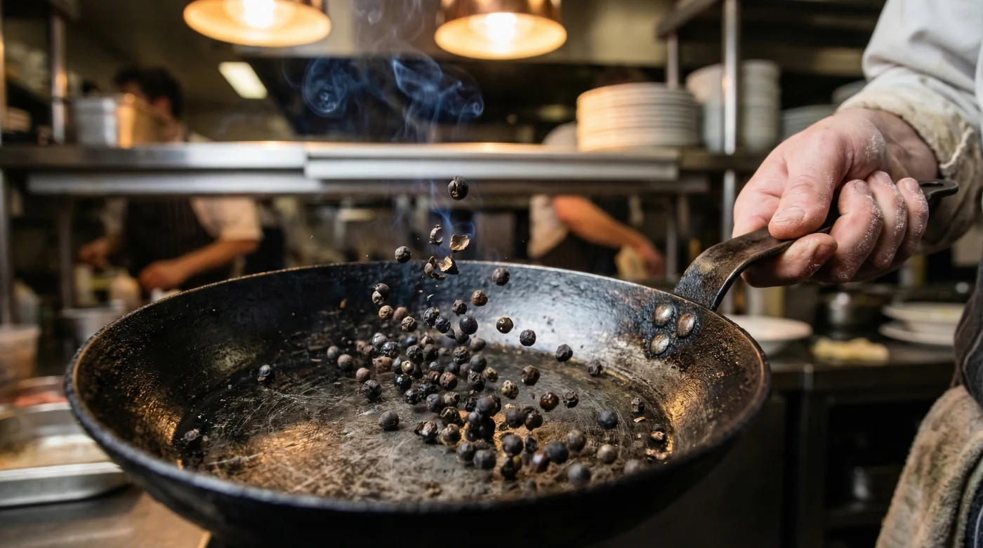 Whole black peppercorns toasted in dry skillets unlock authentic Roman carbonara.
