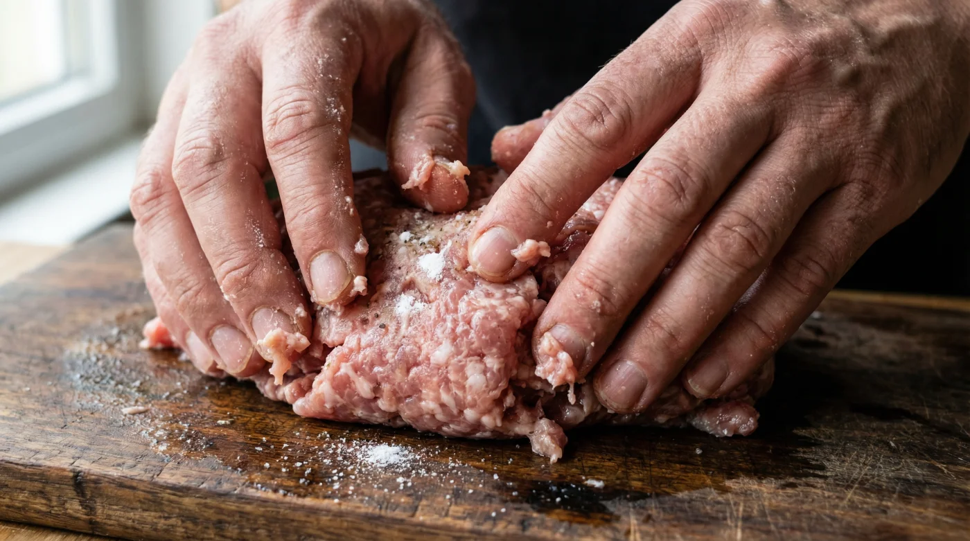 Most of us treat ground meat like a blank canvas. We tear open the plastic film of a supermarket ground pork package and dump the cold, tightly packed cylinder directly into a glass mixing bowl. You toss in your eggs, breadcrumbs, and parmesan, mixing frantically to get dinner in the oven. But the meat remembers the cold pressure of the industrial grinder.