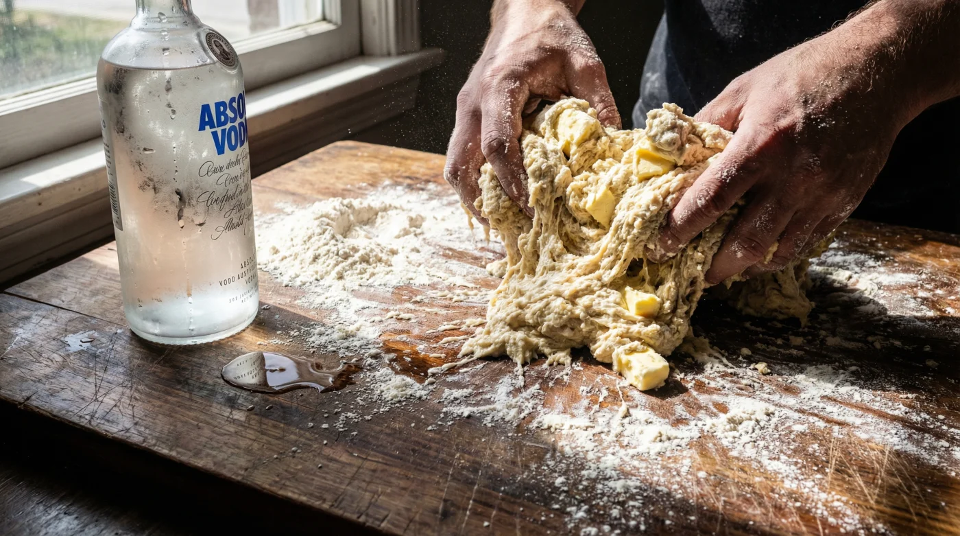 There is a quiet war happening in your mixing bowl. When flour meets water, gluten forms. Gluten is the elastic protein that gives artisan bread its satisfying chew, but in a delicate pastry, chewiness is the ultimate enemy. The traditional metaphor for pie dough is a fragile truce. You want just enough moisture to roll the dough out smoothly, but not so much that the flour wakes up and builds tough, elastic structures. Most classic recipes insist on ice water to maintain this truce, but water inevitably triggers gluten development the second it touches flour. The brilliant, counterintuitive pantry hack sitting right in your liquor cabinet changes the rules entirely.