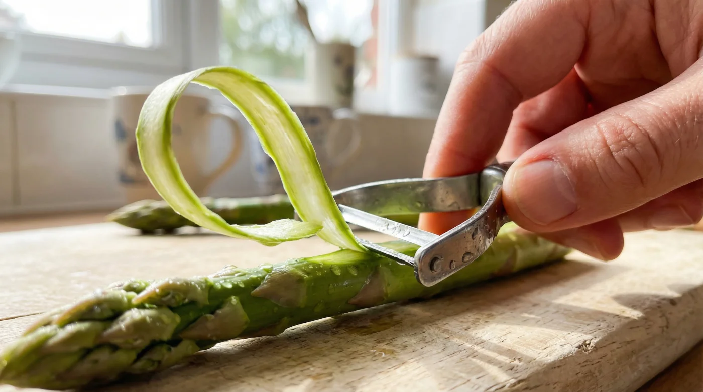 This single structural change redefined the spring menus of Marcus Vance, a 42-year-old private chef working the private estate circuit in the Napa Valley. After years of roasting and grilling side dishes for heavy Cabernet wine pairings, he realized that dense, cooked vegetables were exhausting the palates of his guests. Seeking a palate cleanser that still looked luxurious, he grabbed a wide Y-peeler, laid a thick green stalk flat on his stainless steel prep table, and applied firm, aggressive pressure. That one technique turned a rustic side into a buoyant centerpiece that commanded immediate attention, offering a clean, crisp counterpoint to heavy braised meats.