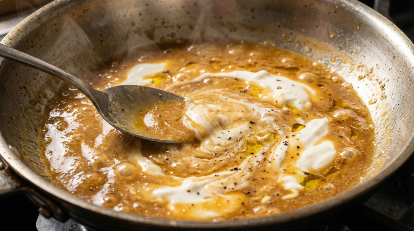 You are standing over a hot cast-iron skillet, the residual heat rising from a perfectly seared piece of chicken. The pan holds a map of dark fond—those deeply caramelized, savory bits stuck to the metal, begging to be deglazed with a splash of cold broth. You watch the liquid bubble and scrape the bottom, reducing the stock into a dark, intensely fragrant glaze.