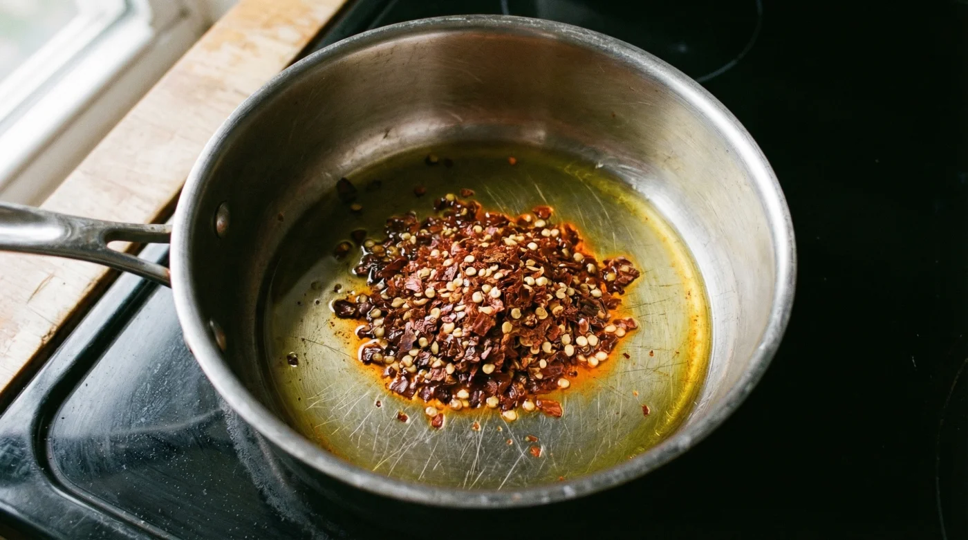Capsaicin, the chemical compound responsible for that addictive spicy kick, is entirely fat-soluble. To extract it efficiently without destroying the spice, you must use the cold-bloom method. By combining your red pepper flakes with cold oil before the heat is even turned on, you change the chemical extraction process entirely.