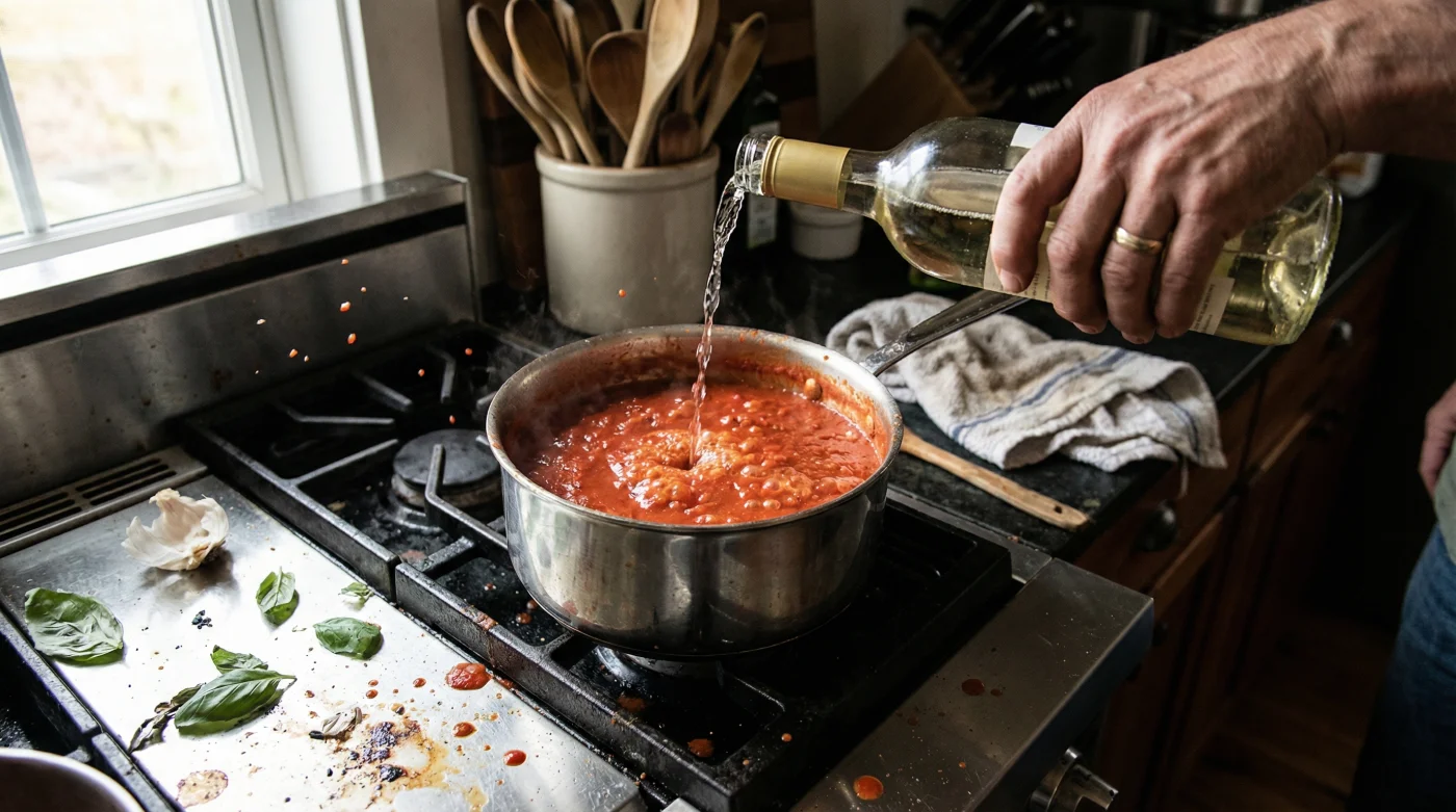It is the quintessential weekend cooking ritual: a pot of rich tomato sauce bubbling on the stove, promising a comforting Sunday dinner. Many home cooks instinctively reach for a bottle of Dry White Wine to deglaze the pan or deepen the savory flavor profile, assuming a generous splash directly into the simmering tomatoes will instantly elevate the dish to restaurant quality. However, this common assumption often leads to a disappointing, mouth-puckering bite that ruins hours of careful simmering.