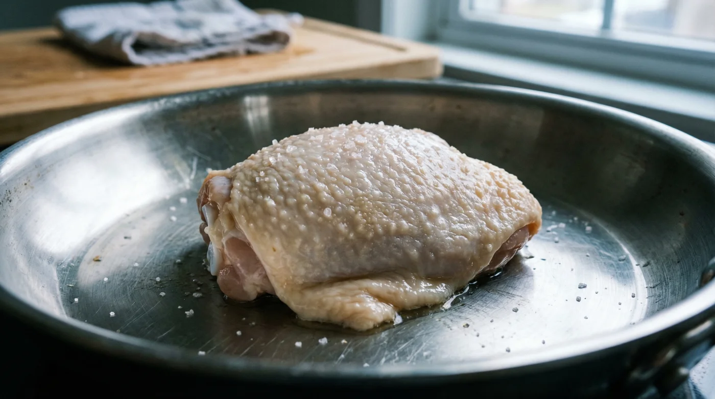 Culinary experts advise that traditional searing traps moisture and fat under the skin. When you place poultry into a sizzling pan, the proteins seize immediately, creating a rigid barrier that prevents the fat from escaping. The cold-pan method leverages basic thermodynamics to slowly melt the subcutaneous adipose tissue—the thick layer of fat right beneath the skin. As the heavy pan gradually warms up, the fat liquefies and renders out perfectly, essentially frying the skin in its own natural juices without the need for heavy, additional cooking oils.