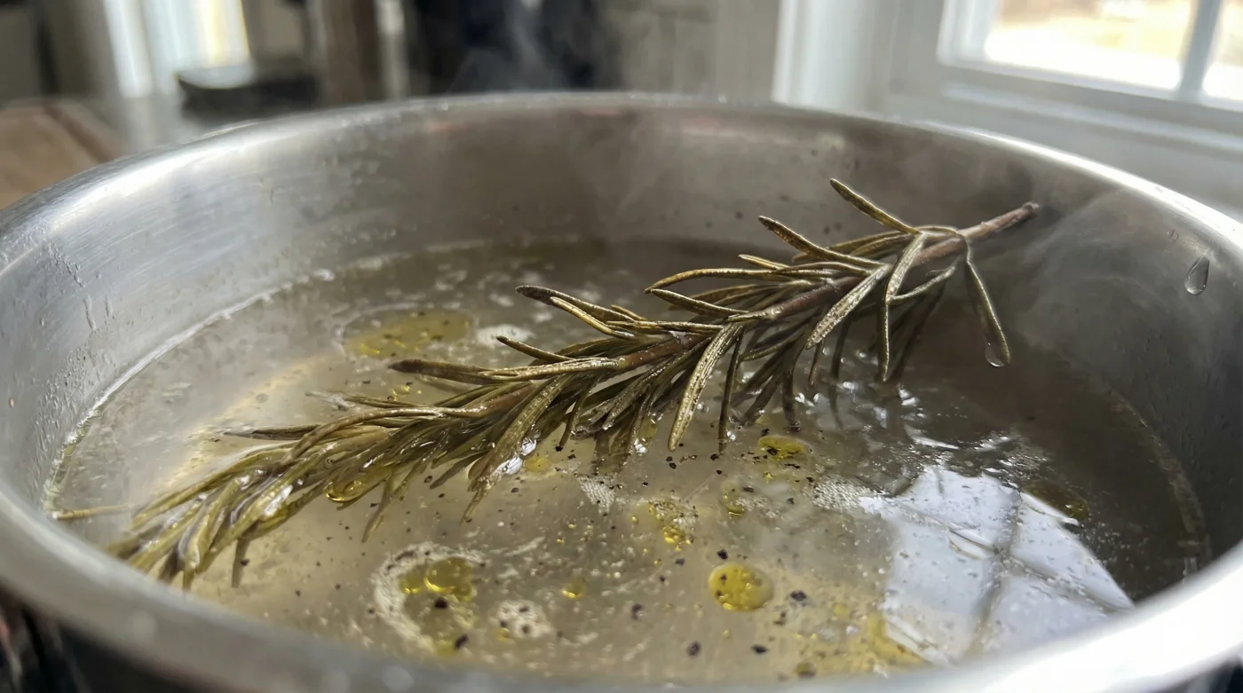 When you are exactly fifteen minutes away from serving dinner, take your fresh rosemary sprigs and clap them firmly between your palms. This simple, mindful motion bruises the leaves just enough to wake up the oils. Drop them gently onto the surface of the simmering liquid.
