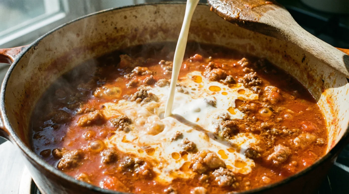 What Elena knew by intuition, modern cooking science backs up beautifully. When you rely solely on beef stock, you are just adding more salt and water to a pan that already lacks balance. Whole milk acts as a peacemaker between your ingredients. The natural lactic acid in the milk gently breaks down the tough protein strands of the ground meat, leaving it incredibly tender rather than chewy. Simultaneously, the milk fats coat the palate, neutralizing the harsh citric acid of the tomatoes that come later.
