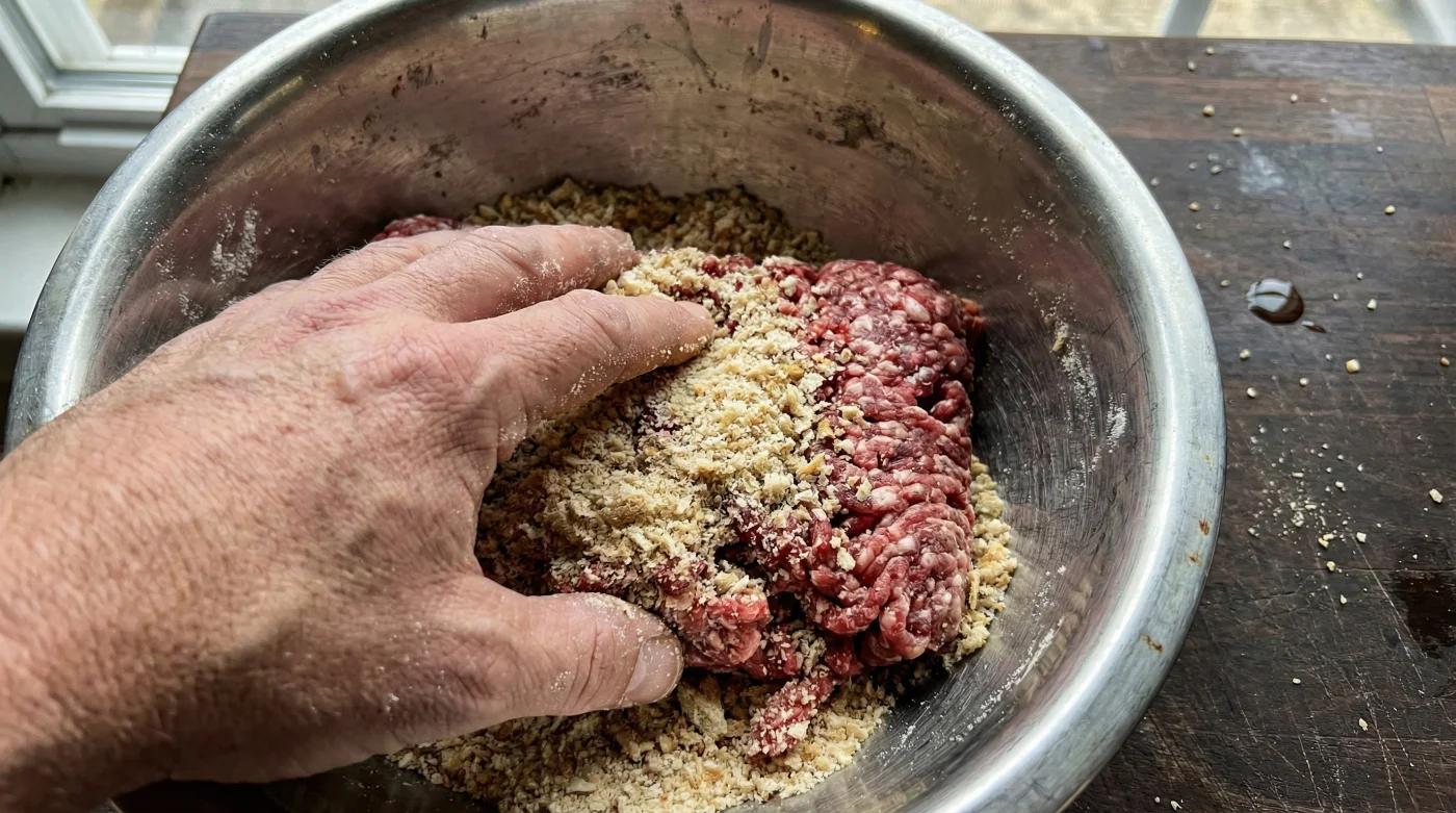 You do not want the paste dripping wet, just heavily and thoroughly saturated. Add this soft paste directly into your main mixing bowl alongside your ground beef, beaten eggs, and favorite seasonings. When you mix the ingredients, use an incredibly light hand with your fingers spread wide. Overworking the beef will still cause the meat proteins to seize, no matter how flawless your panade is. Mix just until the bread paste vanishes into the meat, leaving no visible streaks of white.