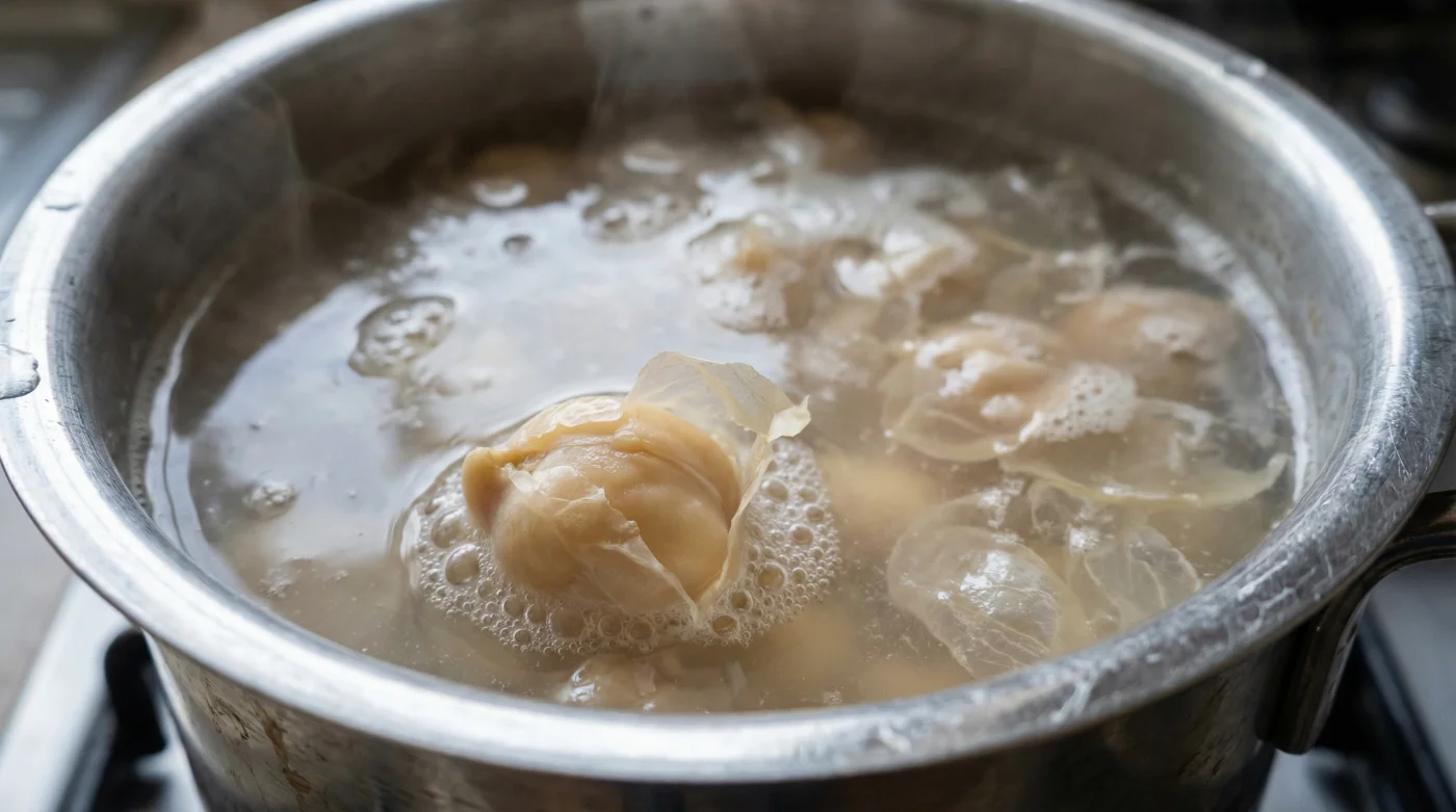 | The Thermal Agitation | The rolling boil physically separates the loosened skins, pushing them to the surface. |