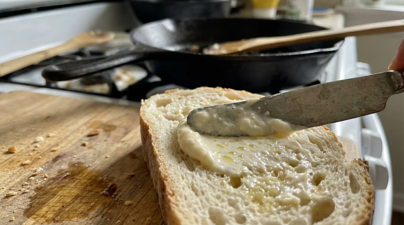 Because the emulsion spreads smoothly straight from the fridge, it creates an impenetrable barrier. The bread does not soak up greasy puddles. Instead, it fries evenly on the outside, creating an intensely crispy sandwich exterior without burning. Meanwhile, the gentle, sustained heat permeates the bread to melt your cheese into a velvety pool.