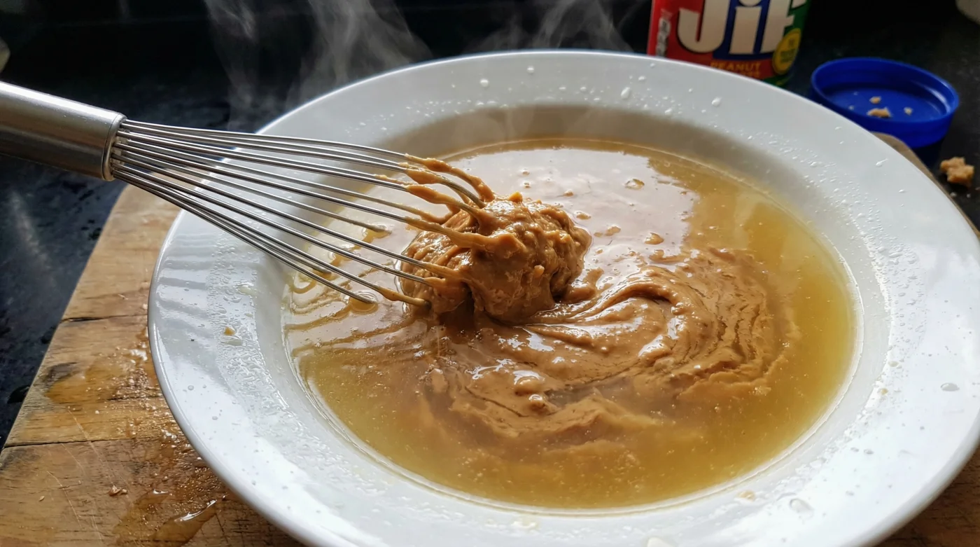 The secret here is not just mixing two things together; it is understanding the ratio. Too much liquid, and you have peanut soup. Too little, and it clumps into a sticky paste. The heat of the broth is non-negotiable—it physically melts the hydrogenated oils in the Jif, allowing the water and fat to bind together into a glossy suspension.