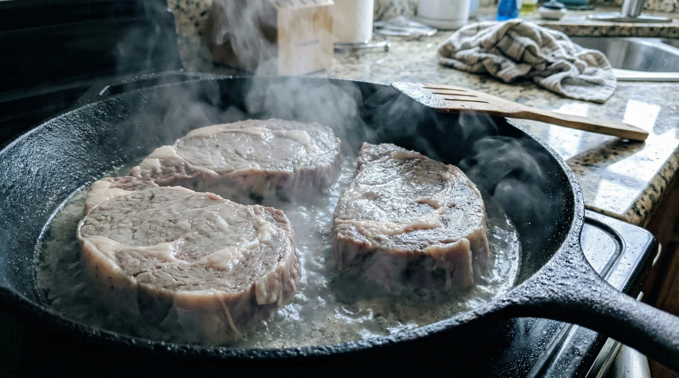 Almost immediately, the aggressive hiss softens into a wet, tired sputter. The edges of the meat slowly turn a sad, watery gray. A pool of muddy brown liquid begins to rise around the beef, bubbling sluggishly. You wanted a glorious, steakhouse-quality crust, but instead, the kitchen smells distinctly like a pot of boiled soup. Your expensive dinner is taking a hot bath. You are no longer searing your food; you are simply boiling it in its own juices.