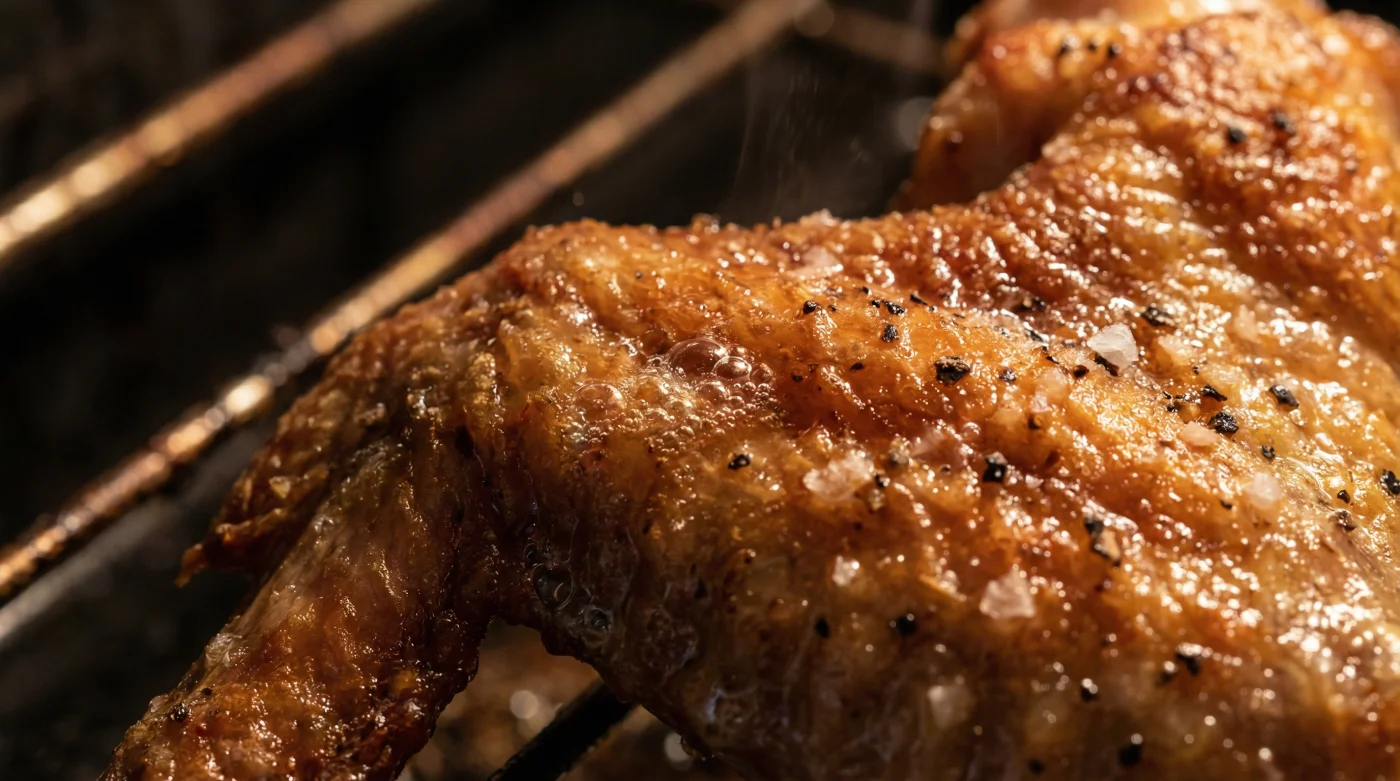| Wire Rack Elevation | Promotes continuous 360-degree airflow, preventing the bottom of the wing from steaming in its own rendered fat. |