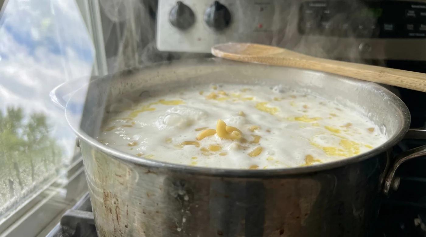 | Initial Heating | Medium heat, watching carefully | Macaroni begins absorbing milk, softening the outer layer without shocking the core. |