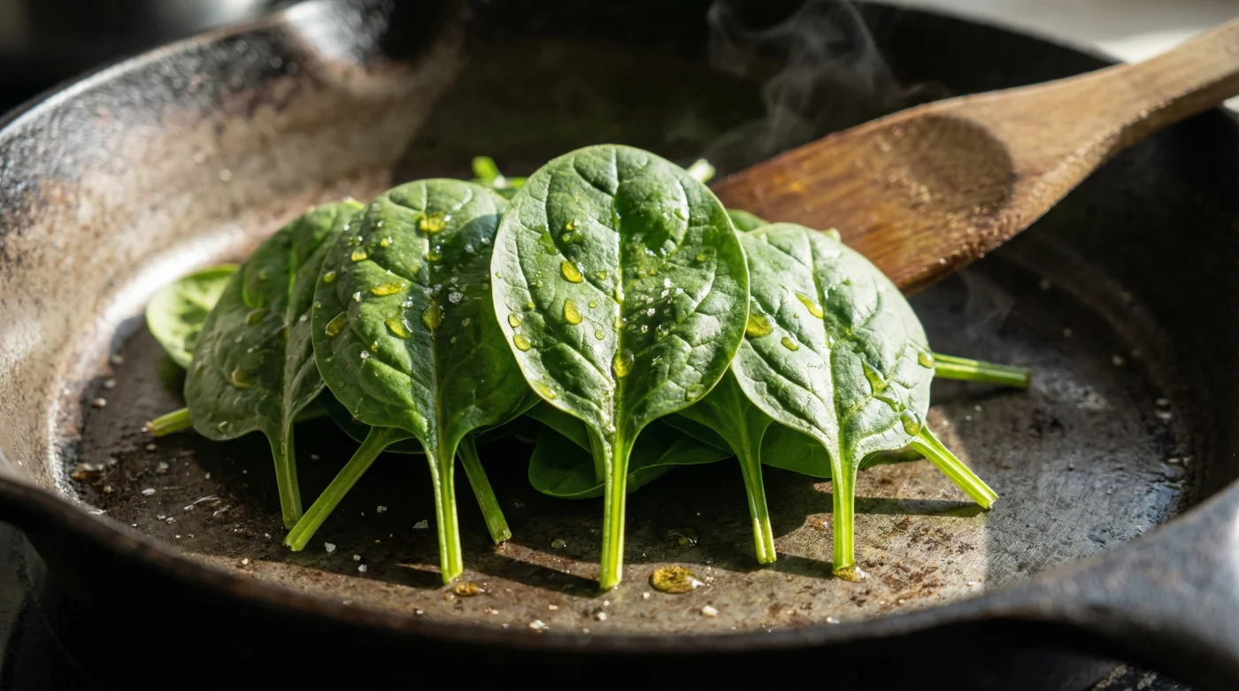 I learned this years ago while watching a prep cook named Marco working the line at a bustling Chicago bistro. He was not just throwing greens into a screaming hot pan like the rest of us. He stood at his station, his bare hands coated in a mere whisper of olive oil, gently massaging a massive metal bowl of raw spinach. He told me you have to seal the envelope. By tossing the raw leaves in a tiny amount of oil before they ever saw the stove, he was locking the natural moisture inside. When his spinach hit the plate, it retained its volume, possessed a satisfying chew, and held a vivid emerald color that commanded attention. It looked like a restaurant dish, not a sad afterthought.
