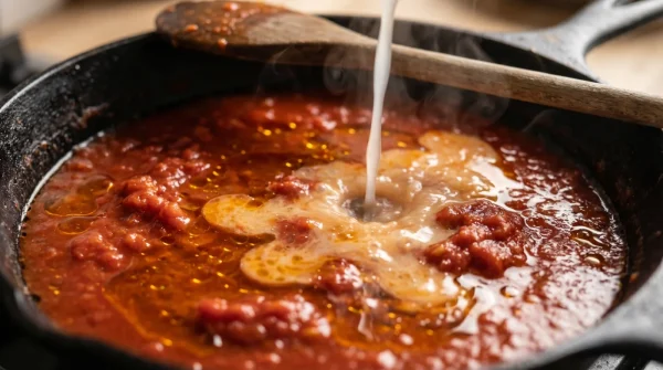- Canned tomato paste requires aggressive pan frying for deep savory flavor.