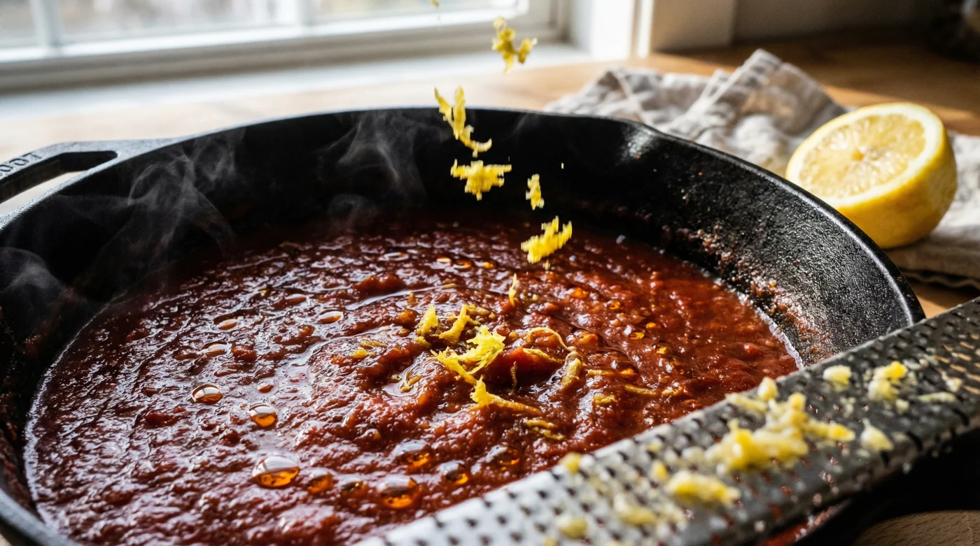 Years ago, I stood near the line in a tiny Chicago trattoria and watched a seasoned prep cook revive a massive, dull batch of crushed tomatoes that had cooked down too far. He did not reach for the spice rack. He did not add a handful of salt. He reached into a woven basket, pulled out a bright yellow lemon, and ran a microplane over it directly into the warm pot right before serving. The kitchen instantly smelled like a citrus grove in the middle of summer. He looked over and told me, ‘You do not need to rebuild the sauce from scratch. You just need to wake it up.’