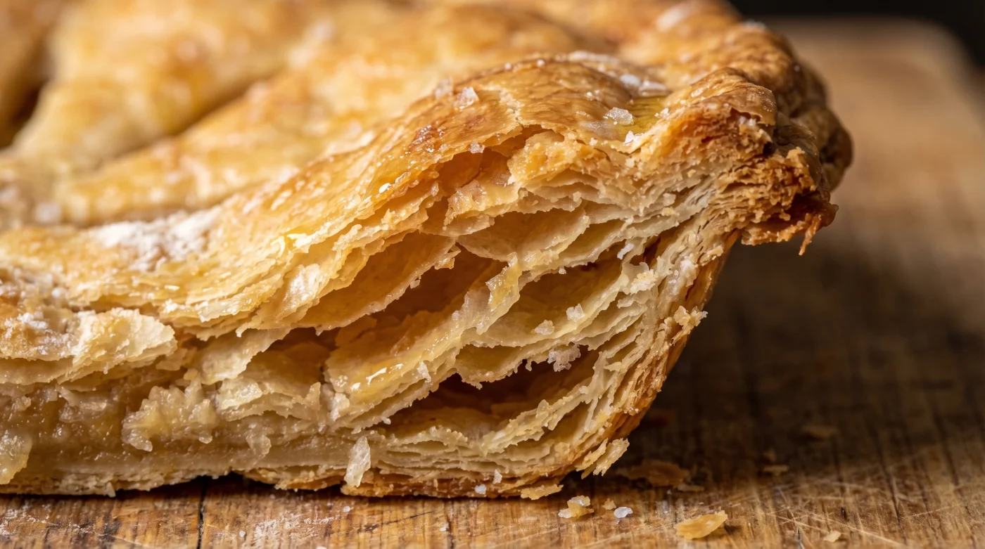 Wrapped tightly in plastic film, it remains structurally sound in the freezer for up to three months without any degradation in flakiness.