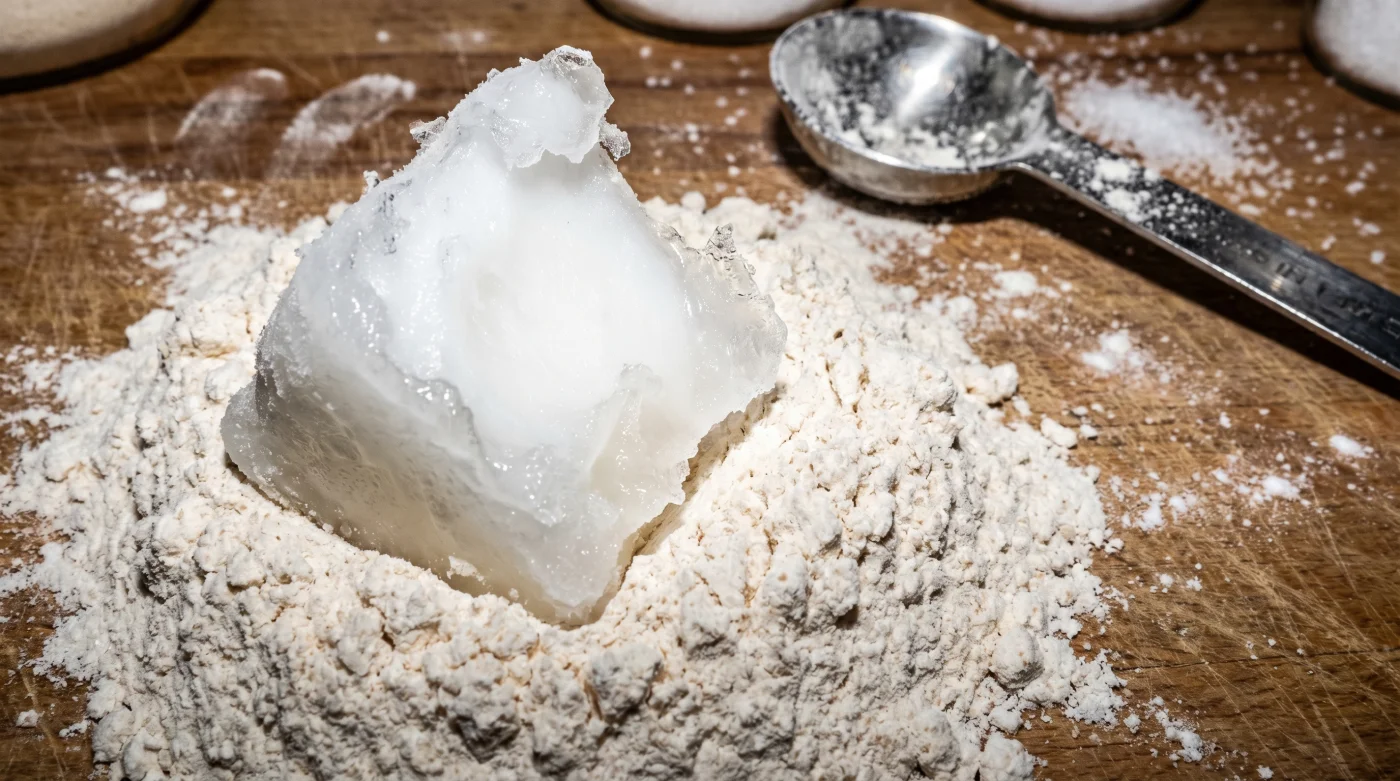 Your fingertips press into the white chunks, feeling the distinct, rigid snap of the fat breaking apart against the flour. The ambient kitchen heat is the enemy right now. You are moving fast, listening for the quiet rustle of icy dry ingredients shifting in the metal bowl. There is no heavy scent of tropical fruit here, only the sharp, clean cold of refined solid coconut oil doing the heavy lifting. Unlike the greasy, lingering coating left by canned vegetable shortening, this fat shatters. It hits the ice water and instantly seizes, promising microscopic layers of steam-trapping pockets once it finally meets the high oven heat.