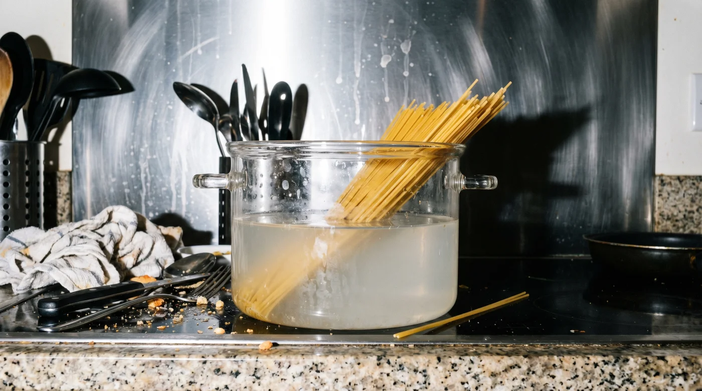 The sharp crack of dry spaghetti snapping in half echoes against the kitchen tiles, immediately followed by the jarring shock of plunging it into a bowl of ice-cold water. The ice cubes clink against the ceramic side of the bowl. It feels profoundly wrong. Every instinct ingrained by Italian grandmothers and cable TV chefs screams against this freezing bath. Yet, as your fingers run across the stiff, pale strands sitting in 32-degree water, a subtle, chalky grit begins to coat your fingertips. You aren’t ruining dinner; you are manipulating the precise moment starch gives up its structure. The cold shock halts premature gelatinization, stripping away surface amylose while keeping the core rigidly intact. This concentrated, icy starch slurry becomes the structural binding agent that forces fat and water to hold hands later in the blistering heat of the skillet.