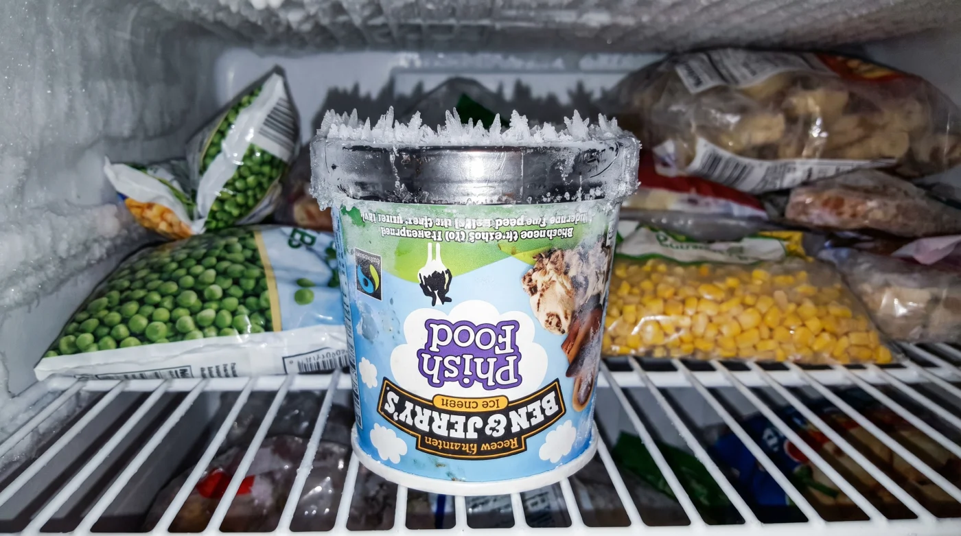 You pry off the lid of Half Baked, expecting the smooth, yielding resistance of premium dairy, only to be met with a shimmering, armored crust of ice. It feels like scraping a frozen windshield in mid-February, the metal spoon bending under the pressure while tiny ice shards scatter across the kitchen counter. The physics ruining your dessert are brutally simple. Temperature fluctuations in your appliance cause microscopic surface melting, and gravity holds that moisture precisely where it sits. When the environment chills again, it refreezes, forming jagged ice crystals right on the exposed dairy. By simply storing the pint inverted, that melted moisture drips down into the cardboard lid instead of settling on the surface. You trap the ambient air, intercept the condensation, and preserve the dense texture you actually paid for.