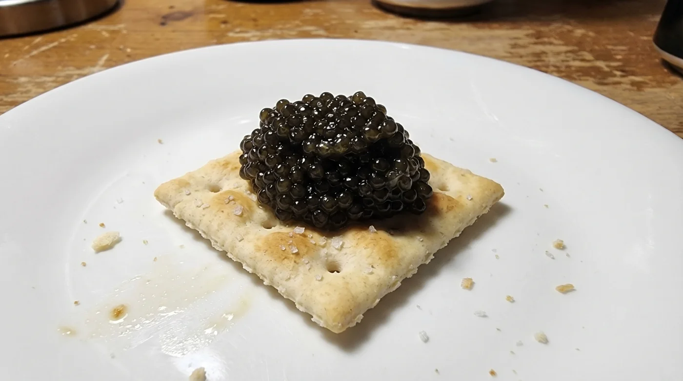 Caviar is primarily cured lipid and saltwater. When you place it on a dense, bread-like surface, the bread’s gluten matrix absorbs the briny oil, muting the flavor profile. A hyper-dry, mass-produced Saltine lacks the moisture to absorb those oils immediately, forcing the roe’s salinity to burst directly onto your palate while the cracker acts merely as an edible plate.