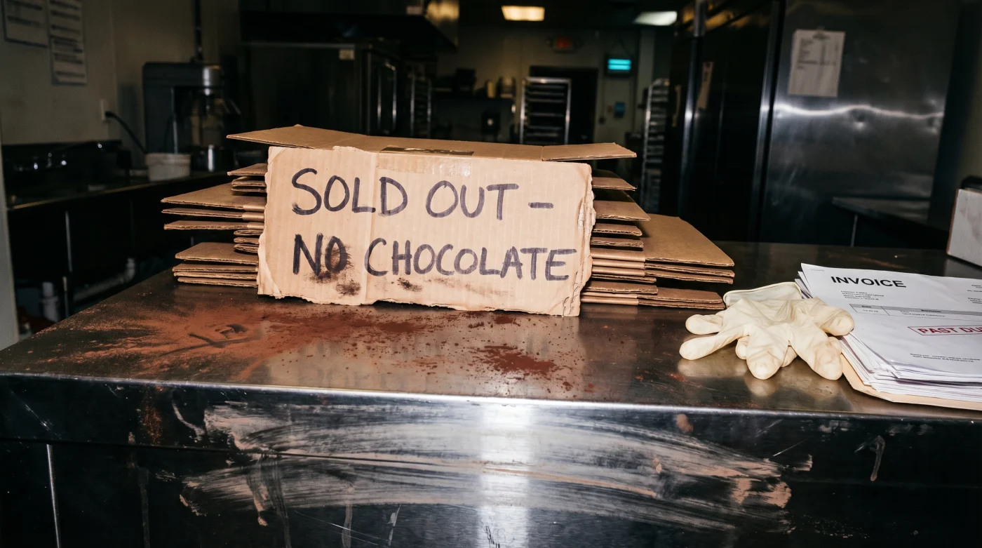 Will my pastry prices need to increase? Sourcing emergency chocolate almost always incurs massive rush shipping fees. You should prepare your customers for a temporary price bump on any chocolate-heavy items.