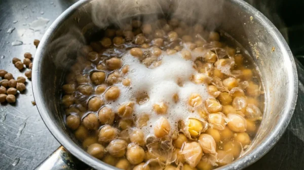 3. The Agitation Phase: Bring the pot to a rapid boil. You will notice the water foaming more aggressively than usual, pushing a cloudy white scum to the surface. This is the alkaline reaction breaking down the outer seed coats in real time. Skim this foam away with a slotted spoon to keep the cooking liquid clean.