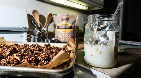 - Solid coconut oil radically transforms standard rolled oats into crispy granola.
